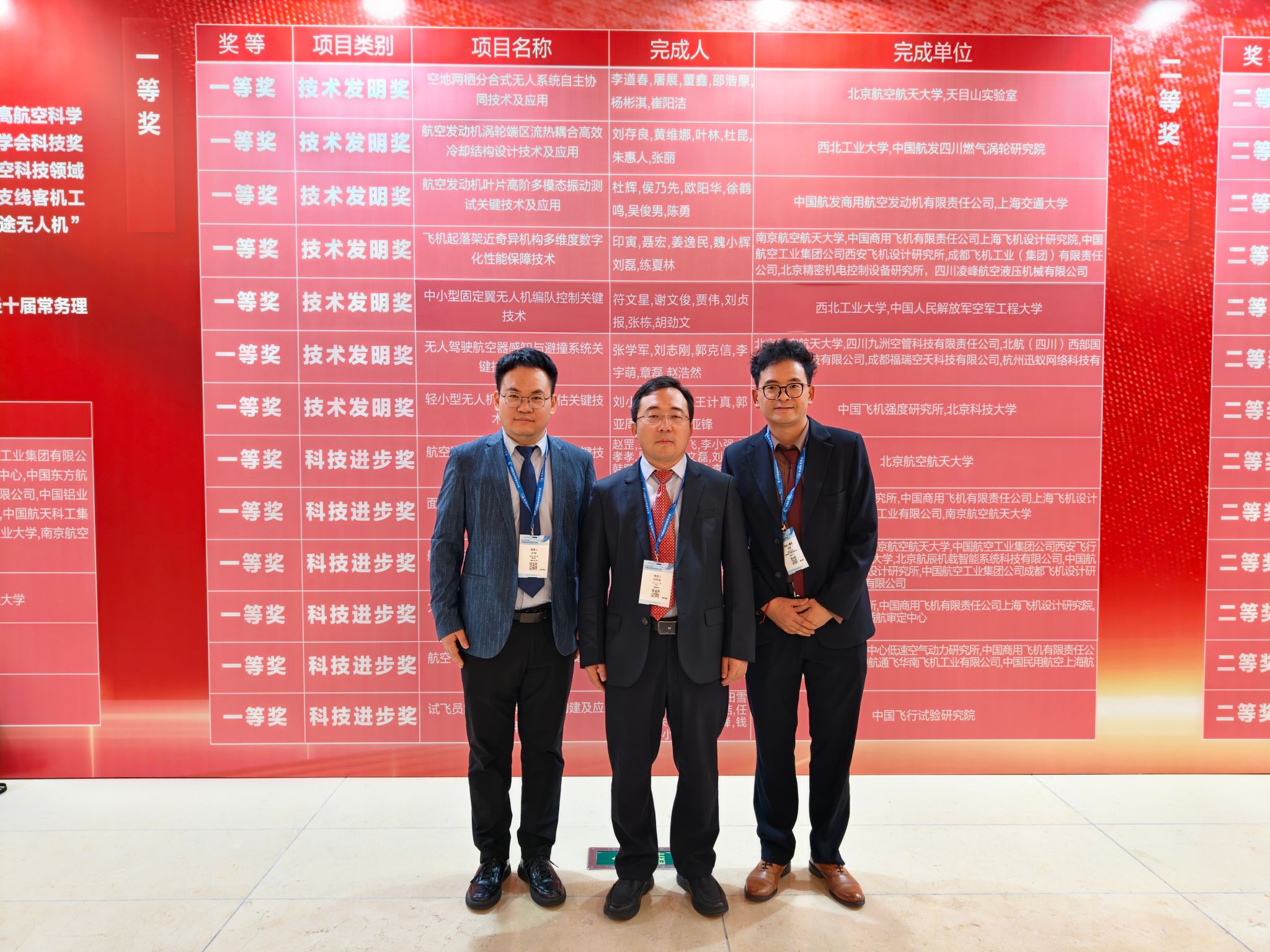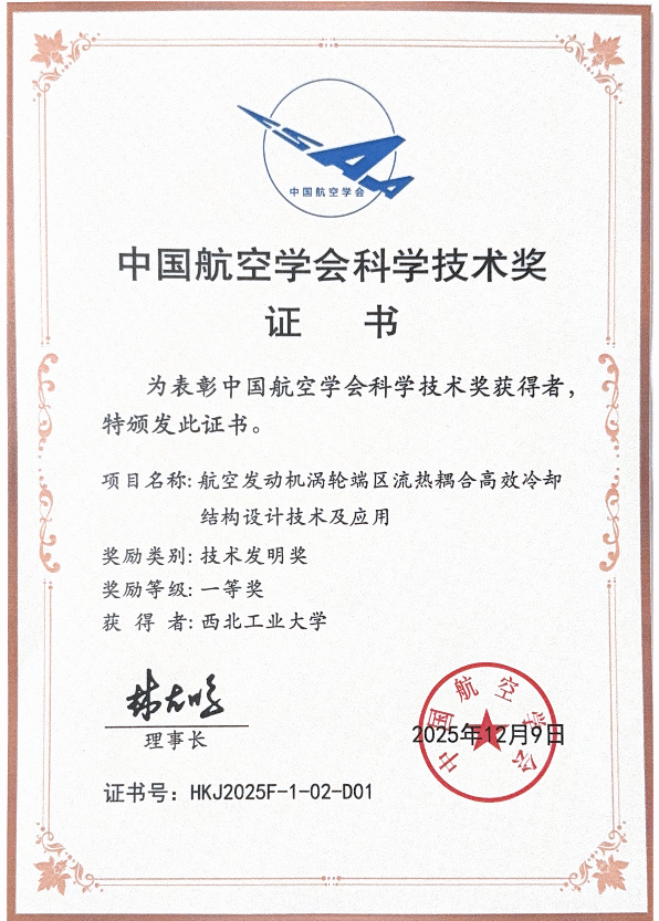 1项成果获中国航空学会技术发明奖一等奖、1名教师获“航空强国中国心”教育基金突出贡献奖一等奖(全国5人)、5名学生获“航空强国中国心”教育基金创新奖(全国20人)。