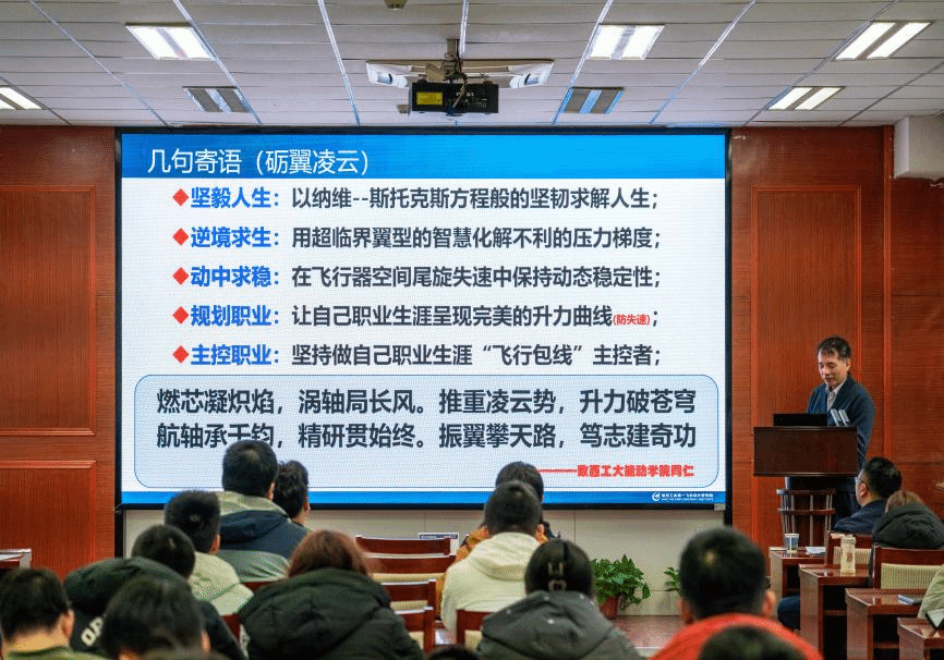 报告下篇回顾了航空工业攻坚克难的艰辛岁月,立足当下研判行业发展机遇。报告最后,艾俊强研究员从职业发展、学术成就与生活乐趣等维度分享个人经验,并为动能师生,特别是2026届硕士毕业生送上励志箴言: